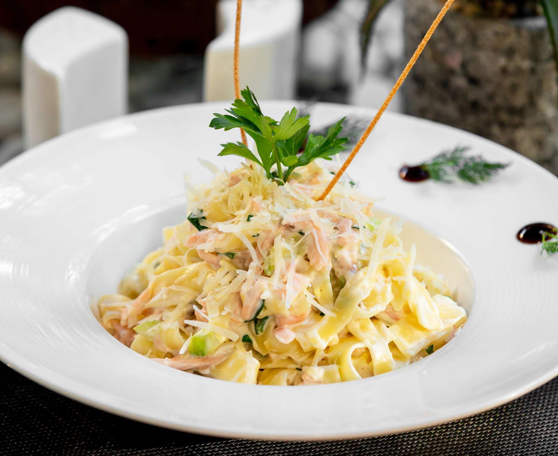 Ajouter les lamelles de saumon fumé dans la sauce au parmesan. Mélanger délicatement pour les enrober de sauce. Assaisonner avec du sel et du poivre selon votre goût. Laisser mijoter à feu doux pendant quelques minutes.